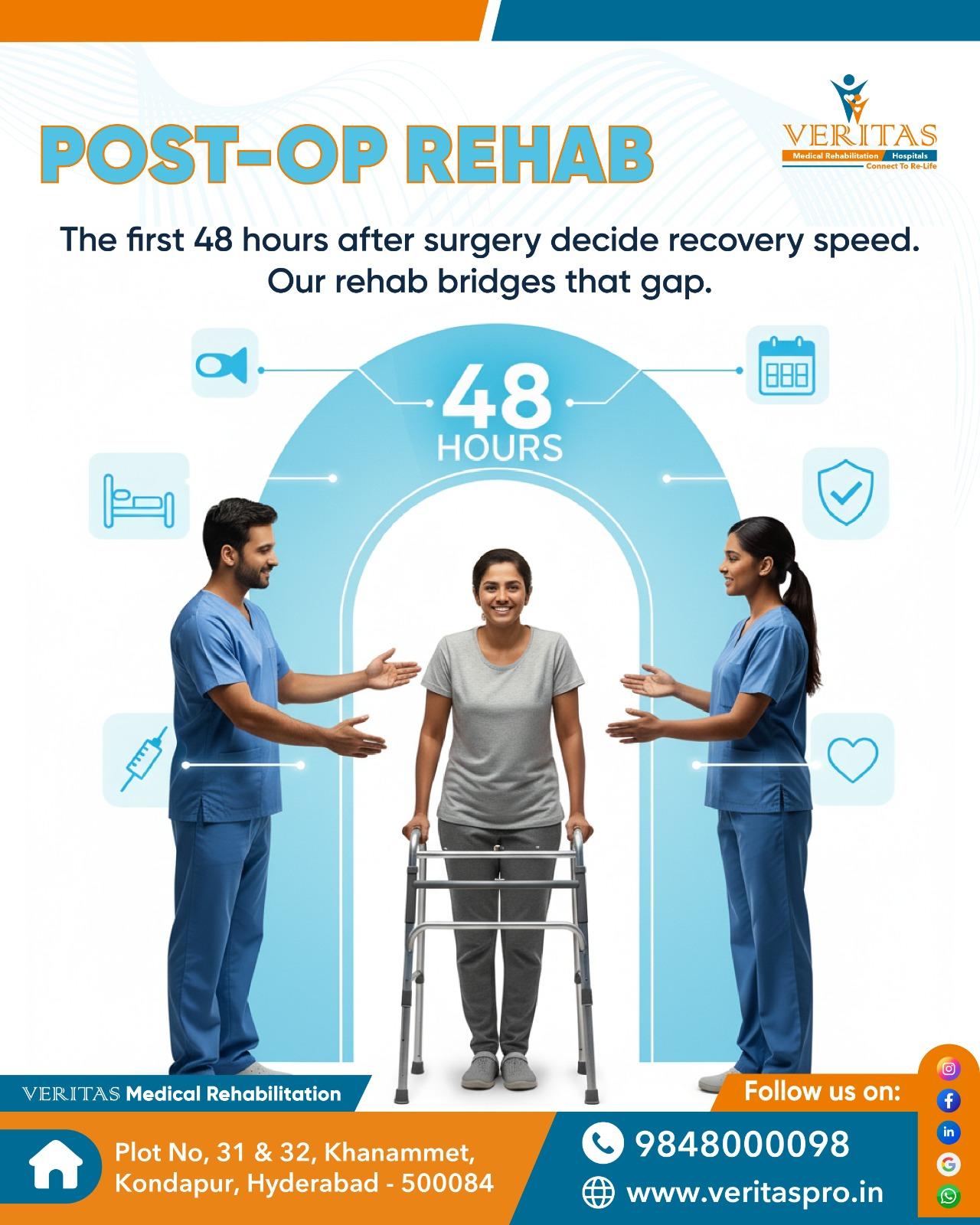#VeritasRehab #Kondapur #PostOpRecovery #EarlyRehab #RehabilitationCare #PhysicalTherapy #PatientSupport #MobilityRecovery #SafeRecovery #FunctionalRecovery #StrengthAndHealing #TrustedCare #HyderabadRehab #RecoveryJourney #HolisticCare #PostSurgeryCare #WellnessJourney #RelearnSkills #CompassionateCare #BetterOutcomes
