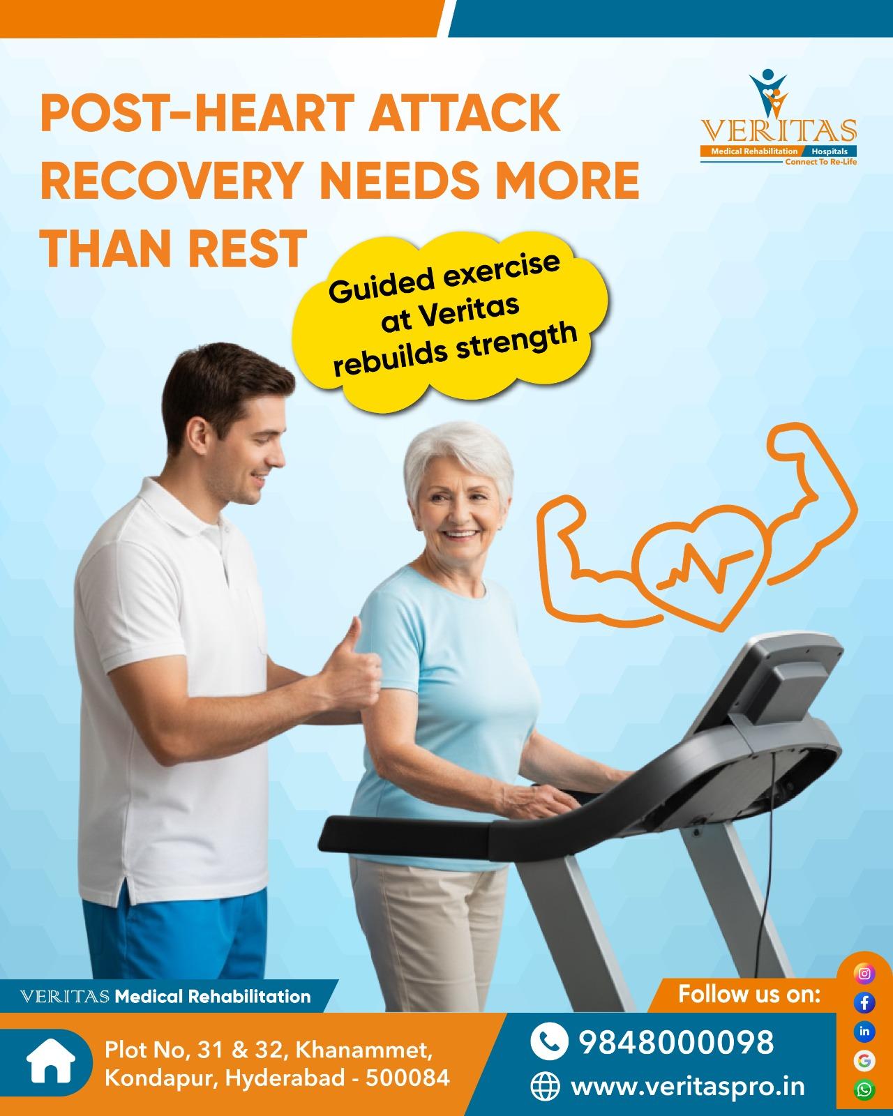 ✨ At Veritas Rehab and Hospitals in Kondapur, one of the best rehab centers in Hyderabad 🏥, our specialists guide patients through tailored post-operative exercises, ensuring safety and steady progress toward regaining independence. 💙